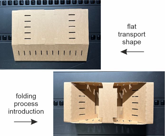 A significant advantage of ECO-CAGE is its flat transport capability, allowing for 2,160 baskets per pallet and significantly reducing CO2 emissions. In contrast, traditional plastic baskets allow only 192 to be stacked on a single pallet, leading to a larger carbon footprint.