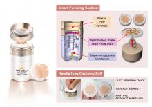Liquid foundations are representative makeup cosmetics that many women use. A new type of packaging is needed that is optimized for consumers to use these cosmetics more easily and conveniently. So we developed the Smart Pumping Foundation Cushion, which combined only the advantages of pump containers and cushion compacts.