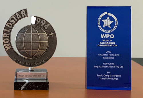 Following their win in the 2019 Australasian Packaging Innovation & Design (PIDA) Award win in 2019, Impact International was also recently awarded a WorldStar Packaging Award for the Sarah, Craig and Margorie 100% recycled PE and sugar cane PE tubes in the Health & Personal Care category.